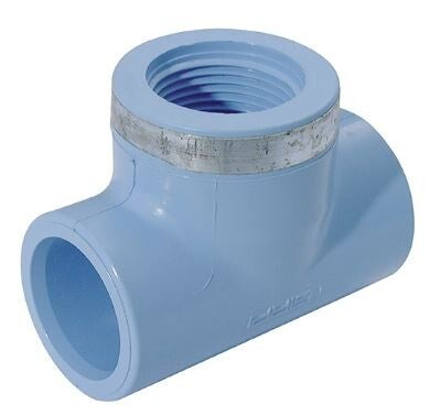 T-stuk met geïntegreerde binnendraadaansluiting, geschikt voor koppeling met schroefdraadcomponenten zoals kranen of fittingen. Zorgt voor een stevige, lekvrije verbinding.