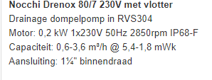 Nocchi RVS dompelpomp + vlotter tyoe 80/7 Drenox
