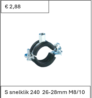 S Snelklik 240 26-28 mm M8/10, geschikt voor het snel bevestigen van leidingen met een diameter van 26-28 mm. De M8/M10 maat zorgt voor extra stevigheid en veiligheid.
